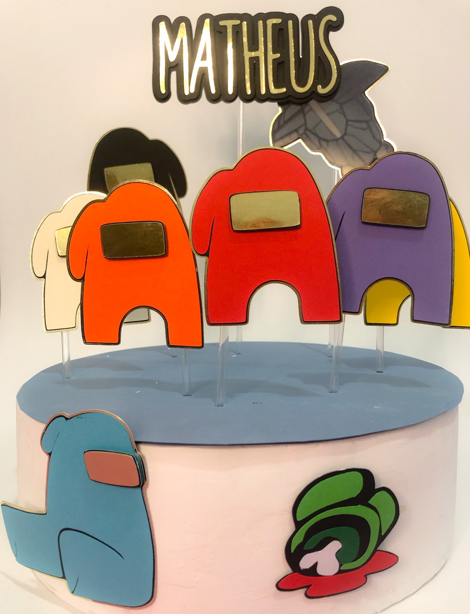 Lindo topo tema Amoung us. Todo feito em papel color plus em camadas com lamicote.